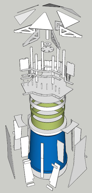 you can raise the upper platform by including a pringles tube section on the top of the benan jerry's tub - the wall sections will still fit. the raised platform can then have the canopy applied or replaced by a conventional pringles roof from one of the other kits.